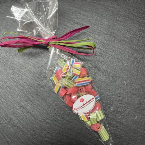Zutaten: Zucker, Glucosesirup, Säuerungsmittel (Zitronensäure), Aromen, Farbstoffe (Lutein, Karamell).
