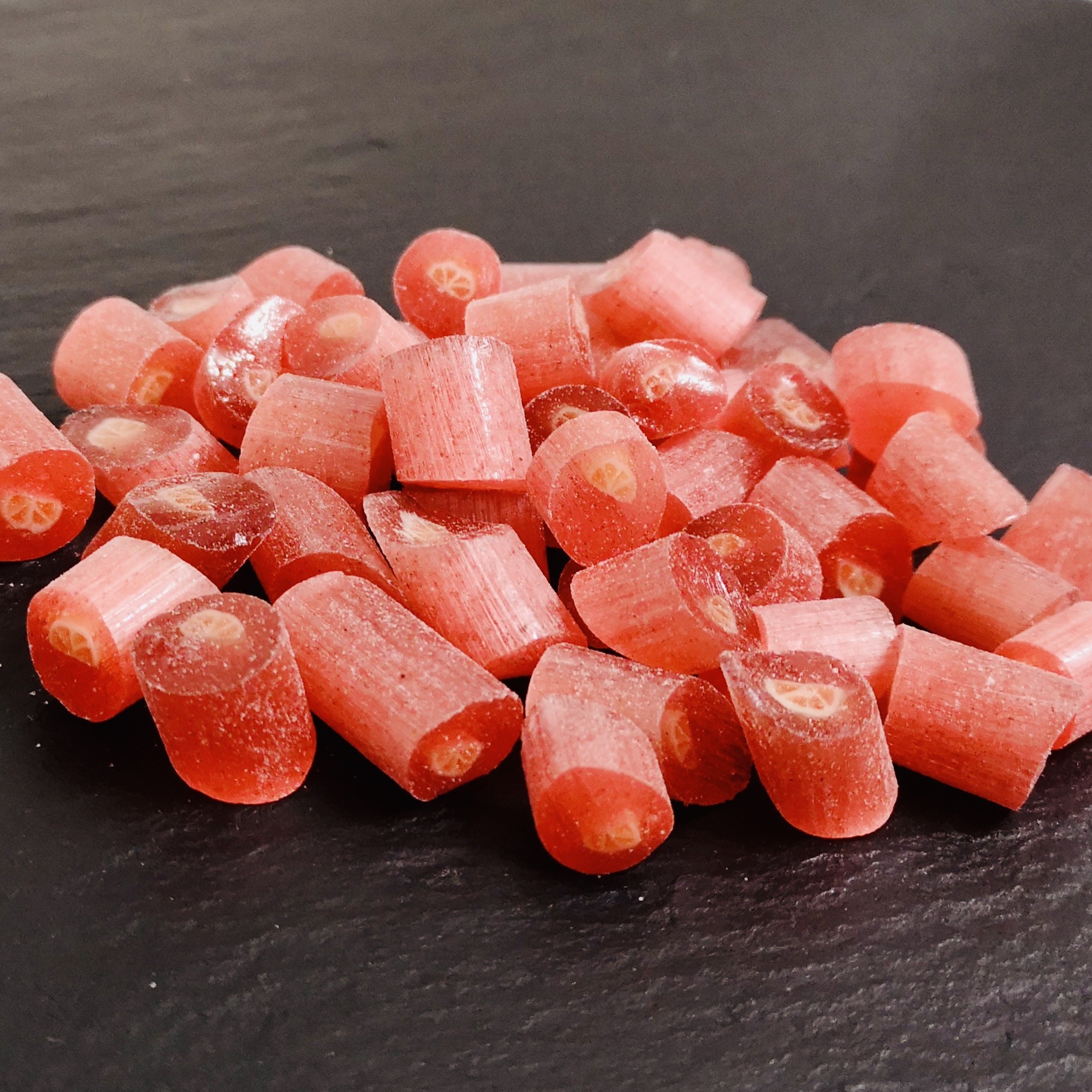 Zutaten: Zucker, Glucosesirup, Säuerungsmittel (Zitronensäure, Apfelsäure), Gewürze (Zimt, Nelken), Aromen, Farbstoffe (Anthocyan, Lutein).