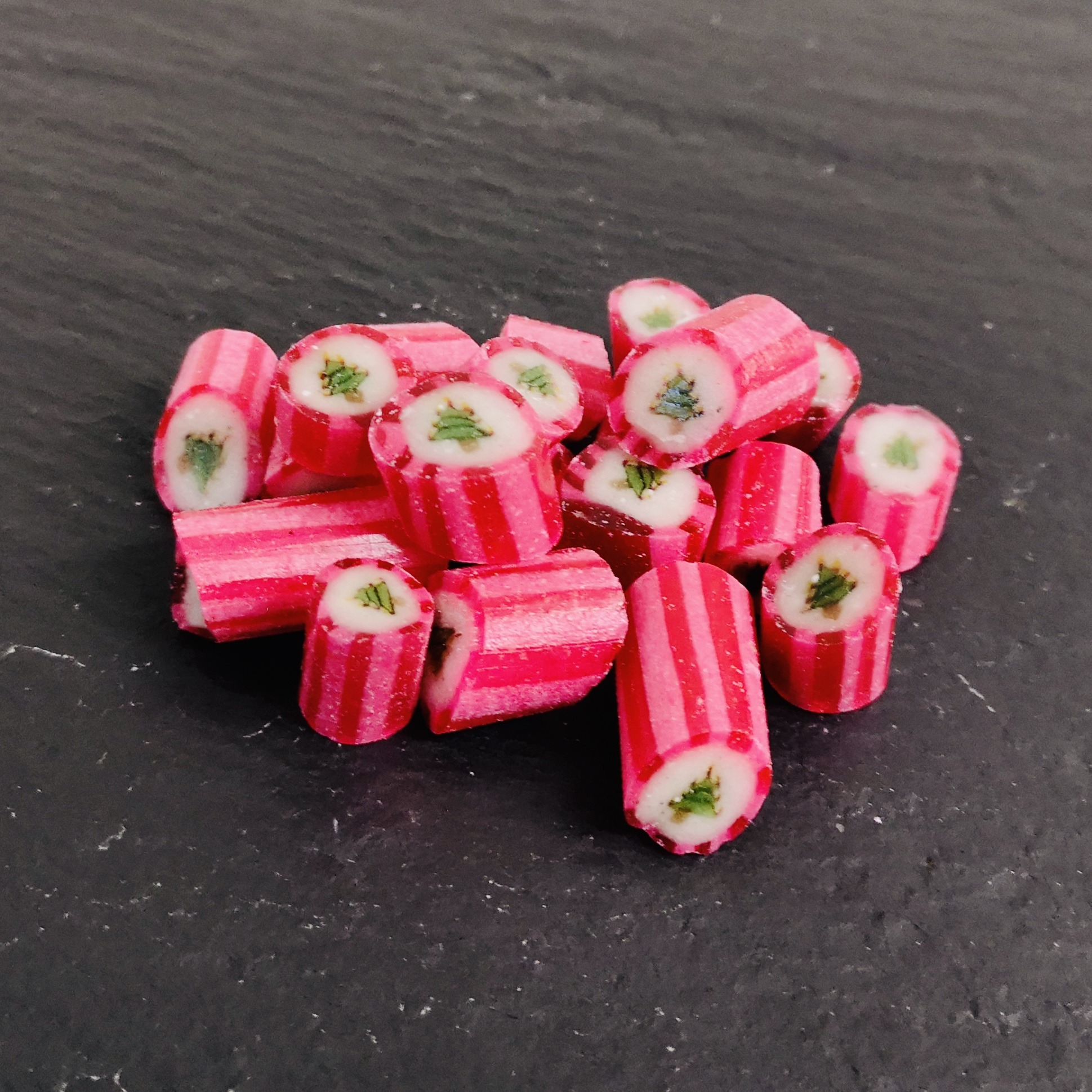 Zutaten: Zucker, Glucosesirup, Säuerungsmittel (Zitronensäure, Apfelsäure), Gewürze (Vanille, Zimt), Aromen, Farbstoffe (Anthocyan, Lutein, Kupfer-Chlorophyllin).
